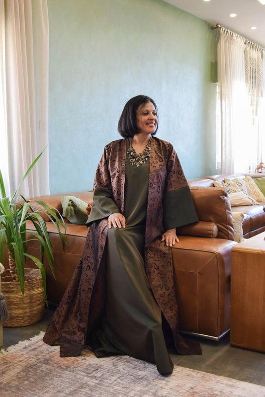 Brawn Tafta Dark Jacket Long Abay & Bark Green Dress Set
