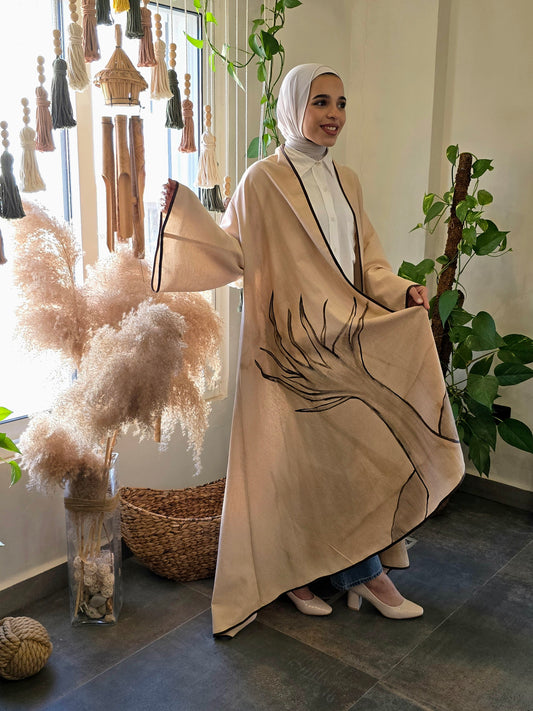 Linen Beig Long Jaket painted with Coffee